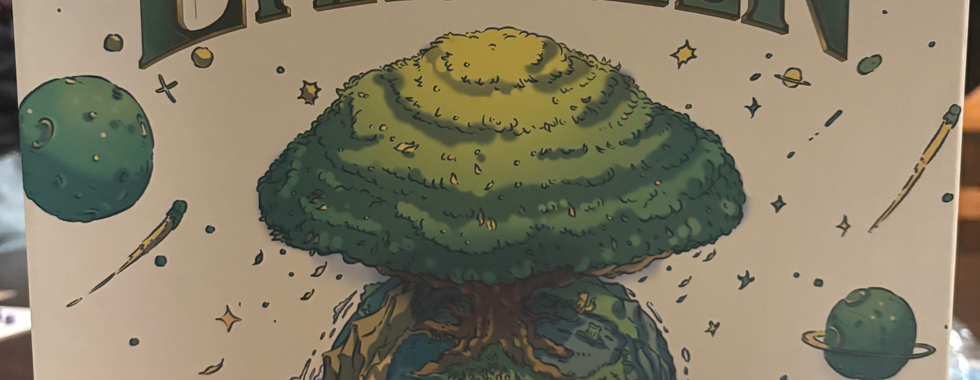 In Evergreen, ogni giocatore gestisce un suo pianeta e deve trasformarlo in un ecosistema rigoglioso, piantando ramoscelli che diverranno alberi, cespugli e creando laghi, il tutto mentre cerca di sfruttare al meglio luce solare e fertilità del suolo. Non c’è una narrativa vera o propria, ma il tema funziona ed è integrato nelle meccaniche: il sole gira intorno al pianeta e il modo in cui le piante di ogni giocatore assorbono la luce (e si fanno ombra tra loro) è una dinamica unica, nonché una fonte di punti.